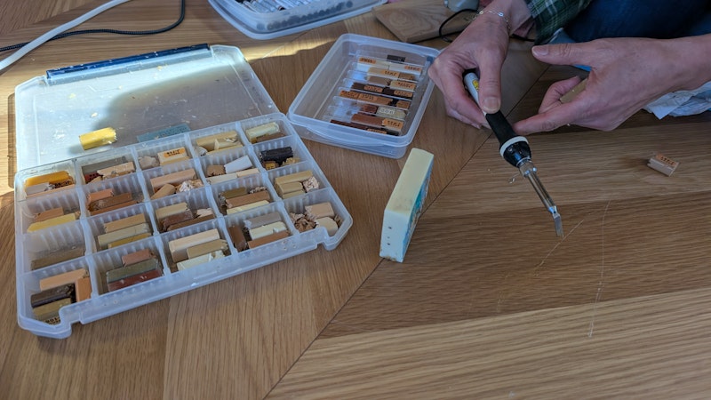 今日、床の傷を直しに、専門の職人さんが来てくれて、