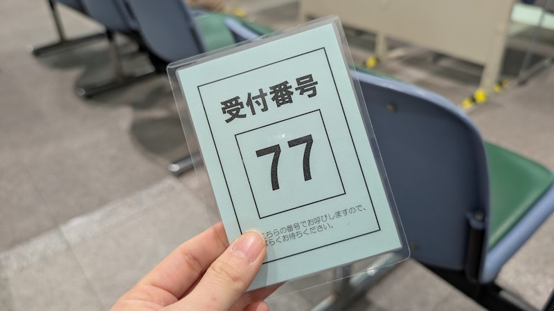 受付の人が、77番という番号を「良い番号ですね!」と教えてくれたこと。